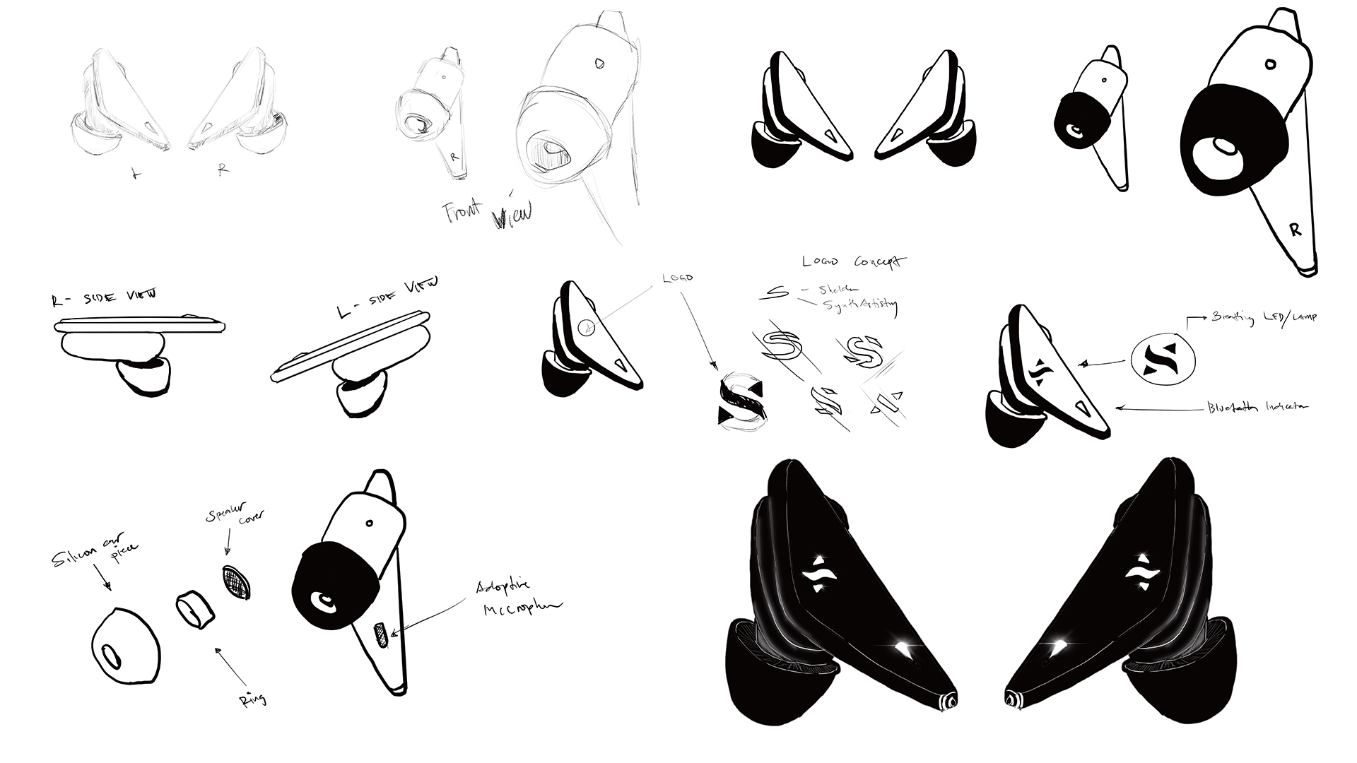 In this project, my role encompassed both digital artistry and motion design. As a digital artist, I conceptualized the earbuds' design, creating detailed sketches in Procreate to refine their unique triangular shape, color schemes, and features. Transitioning into motion design, I brought these concepts to life by rendering the 3D model in Cinema 4D, adding intricate details like the breathing logo effect, Bluetooth LED lights, and realistic textures. This dual role allowed me to merge creativity and technical expertise, ensuring a seamless transformation from concept to a visually compelling 3D representation.
